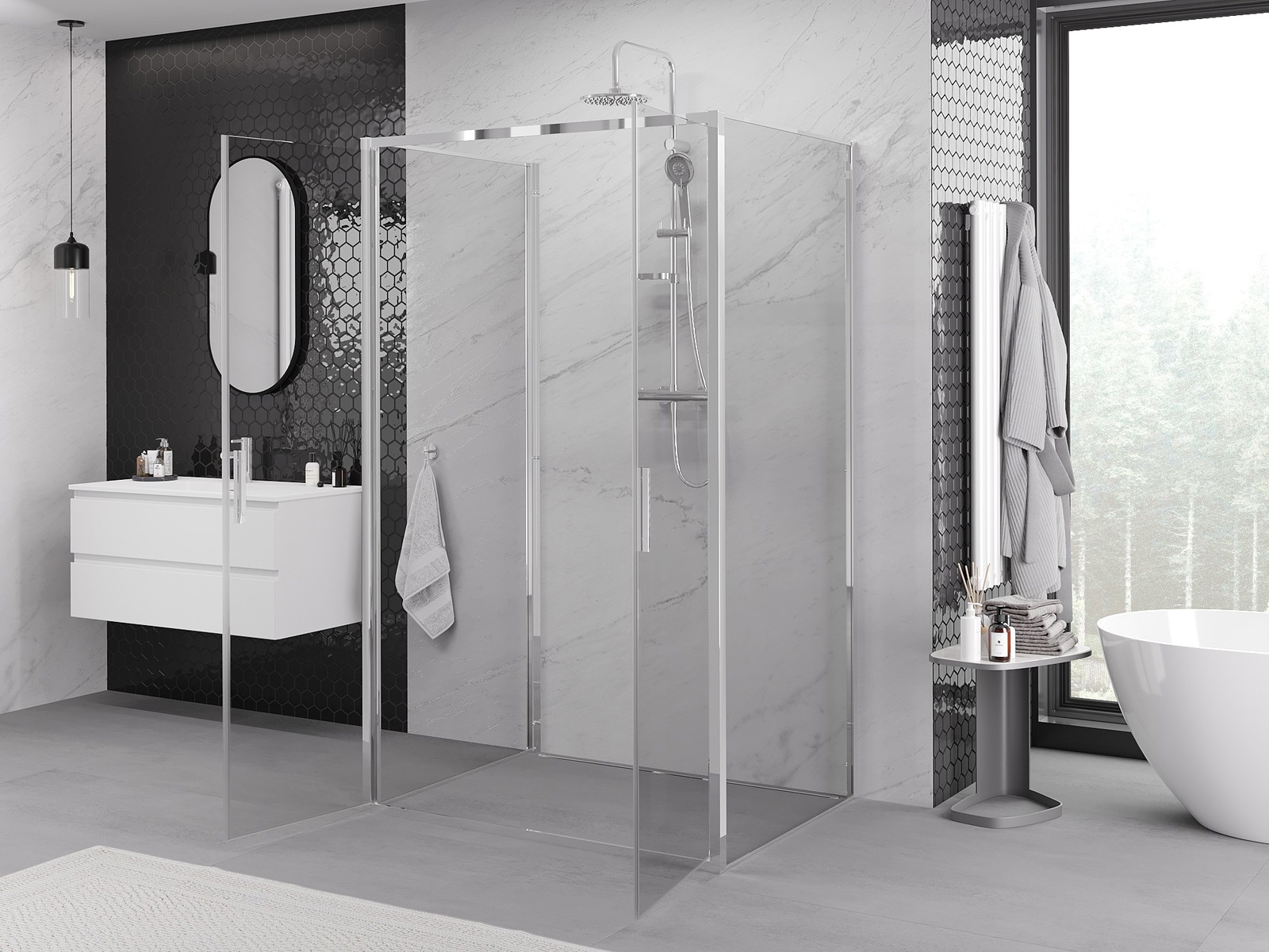 Mexen Exo-3S sprchový kout 3-stěnný, sklápěcí 70 x 85 cm, transparentní, chrom - 814-070-085-01-00-3S