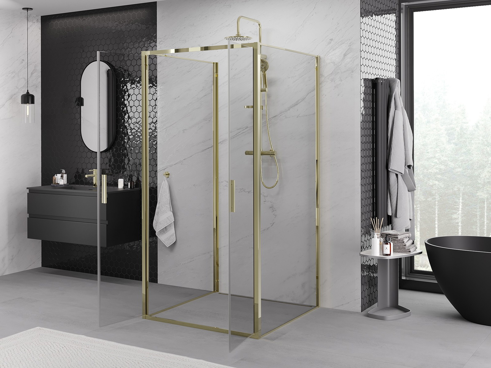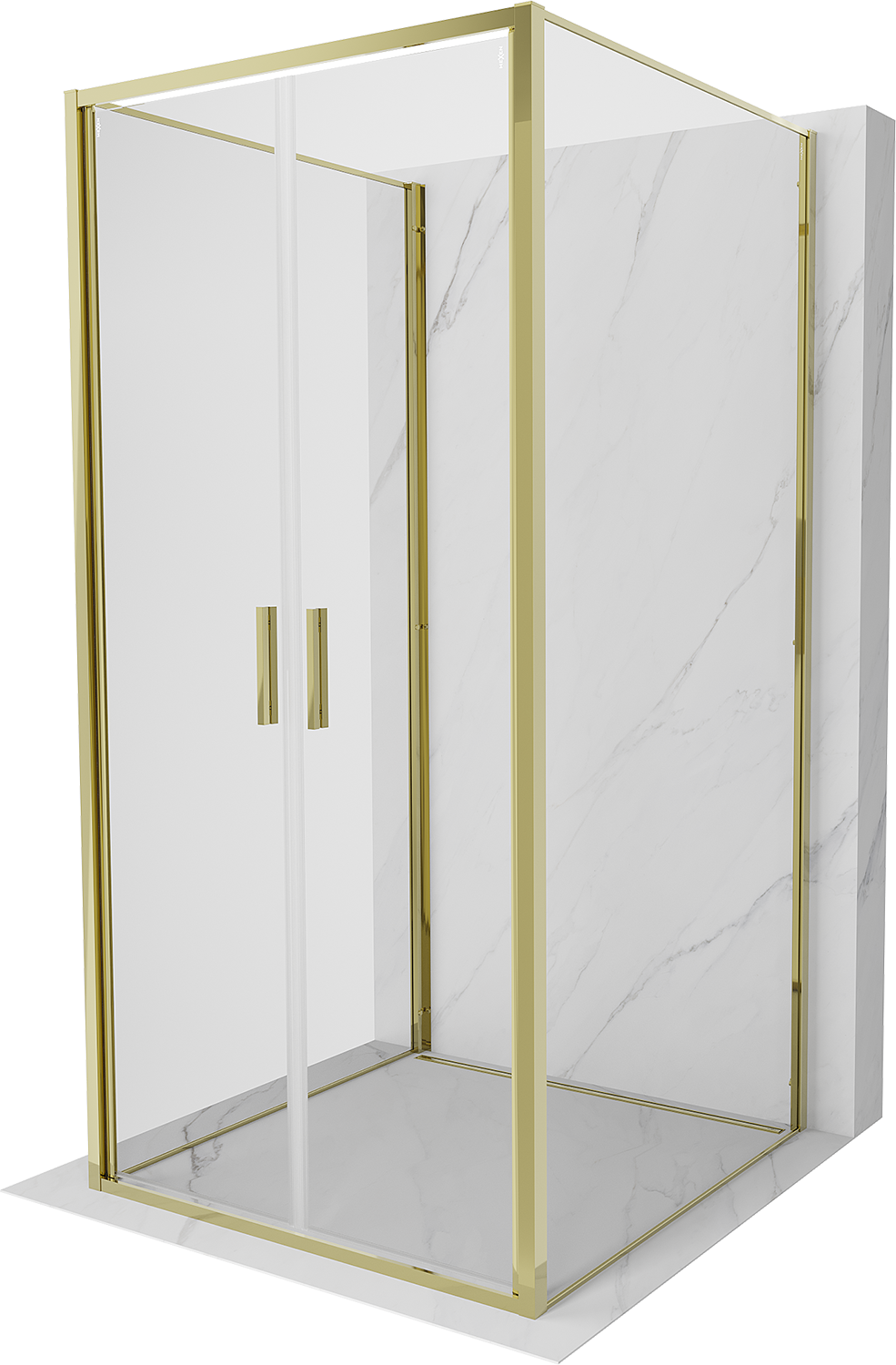 Mexen Exo-3S sprchový kout 3-stranný otevírací 100 x 100 cm, transparentní, zlatá - 814-100-100-50-00-3S