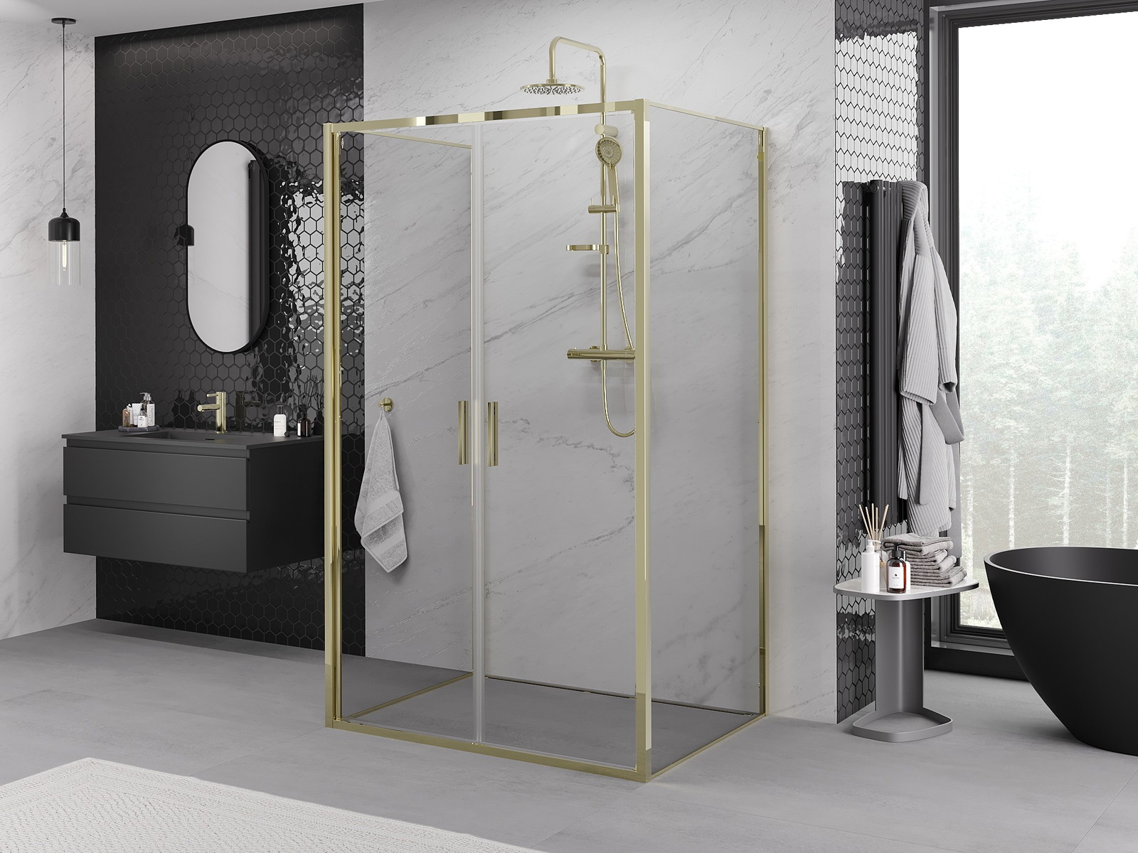Praktická a pohodlná rukojeť je vyrobena z odolného a trvanlivého kovu. Moderní tvar ve spojení s povrchovou úpravou, která ladí s barvou profilů, dodává celku moderní a stylový vzhled, zdůrazňující estetiku každé koupelny.