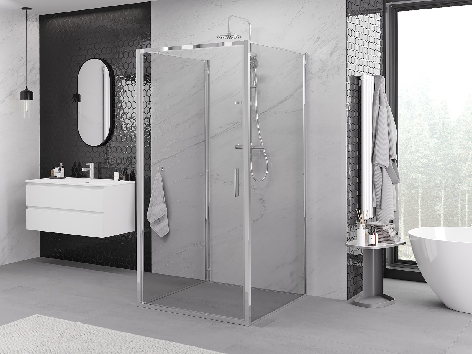 Díky použití univerzálního montážního systému mohou být sprchové dveře namontovány na pravé nebo levé straně, podle potřeby. Díky tomu můžete snadno navrhnout sprchu přizpůsobenou prostoru koupelny.