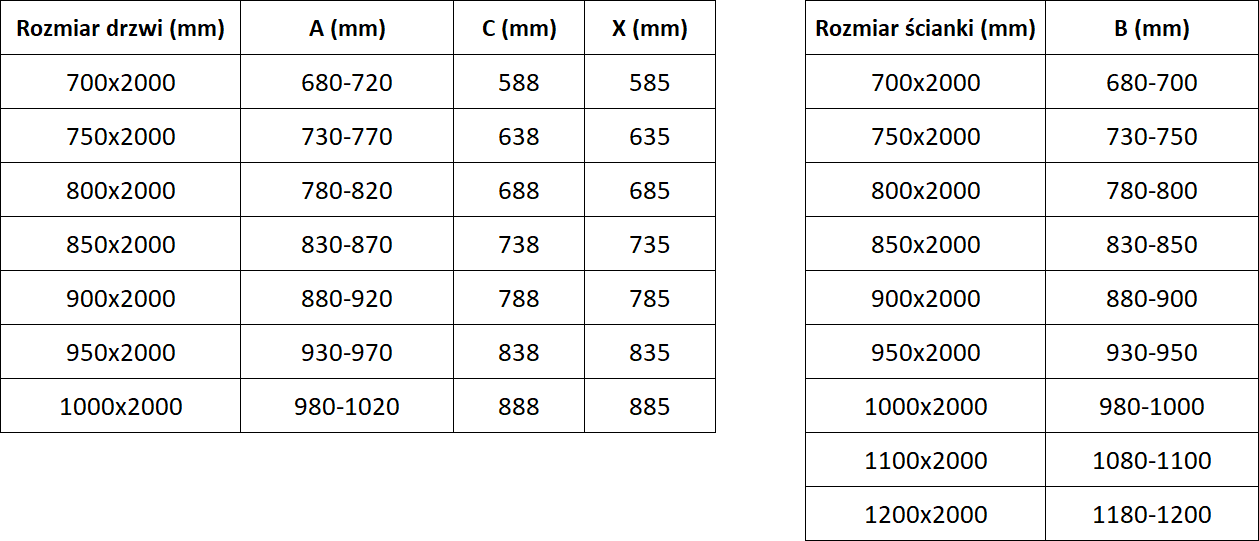 Velikost: 80x85 cm (dveře 80 cm. stěny 85 cm)