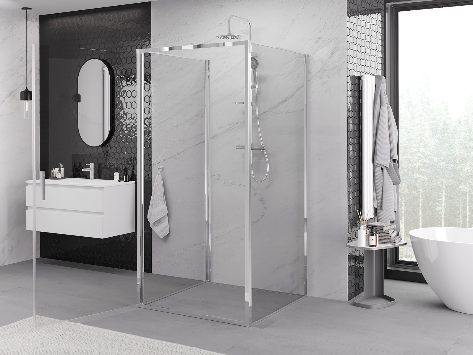 Díky použití univerzálního montážního systému mohou být sprchové dveře namontovány na pravé nebo levé straně, podle potřeby. Díky tomu můžete snadno navrhnout sprchu přizpůsobenou prostoru koupelny.