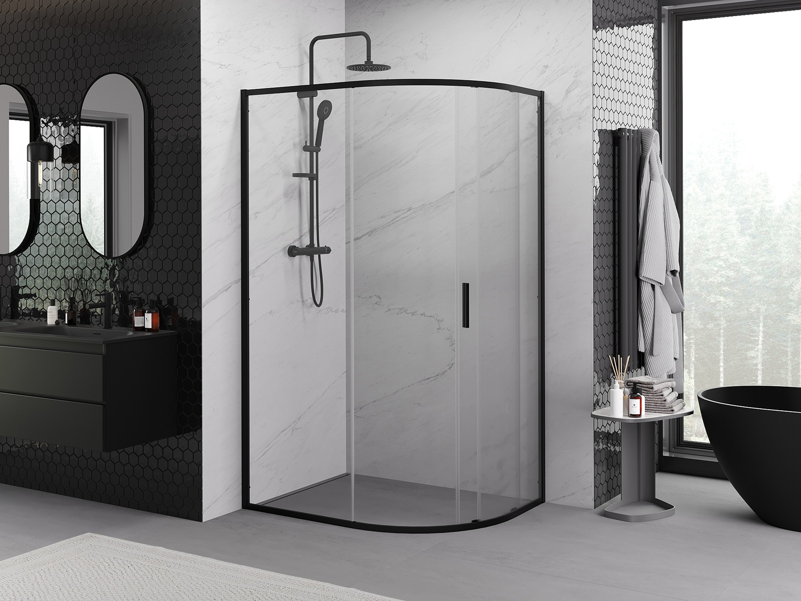 Mexen Exo asymetrická půlkruhová sprchová kabina s posuvnými dveřmi 120 x 80 cm, transparentní, černá