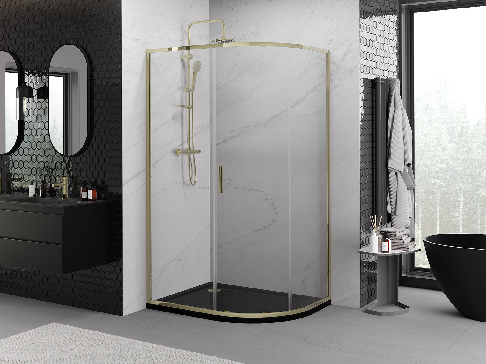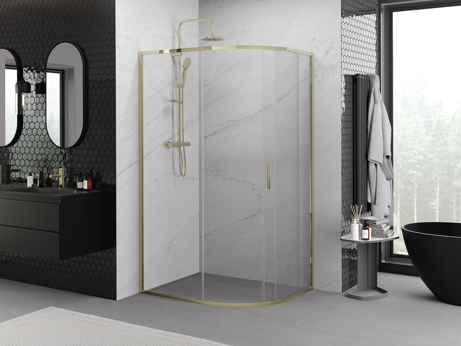 Mexen Exo asymetrická posuvná oblouková sprchová kabina 120 x 80 cm, transparentní, zlatá - 8131-120-080-50-00