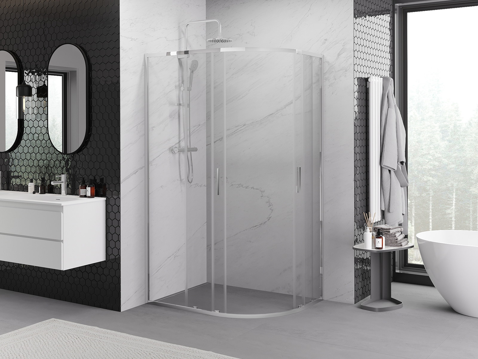 Posuvné dveře se pohybují po speciálních vodicích kolejnicích a nevyžadují další prostor pro jejich otevření, takže se osvědčí v menších koupelnách. Díky dvojitým válečkům s kovovým tělem je jejich pohyb plynulý.