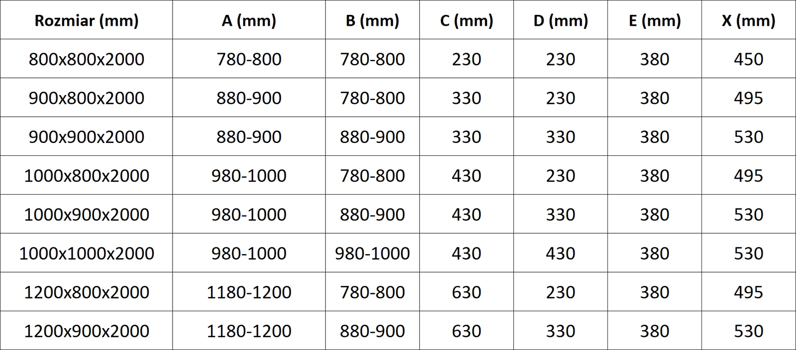Sprchové kouty, dveře a stěny jsou standardně přizpůsobeny pro montáž na sprchové vaničky určitých rozměrů. Právě tyto rozměry jsou uvedeny v názvu nebo popisu výrobku. Je však třeba mít na paměti, že skutečné rozměry prvků se mohou mírně lišit od nominálních hodnot. V případě plánované instalace přímo na podlahu se doporučuje pečlivě zkontrolovat vnější rozměry a uspořádání prvků podle technického výkresu.
