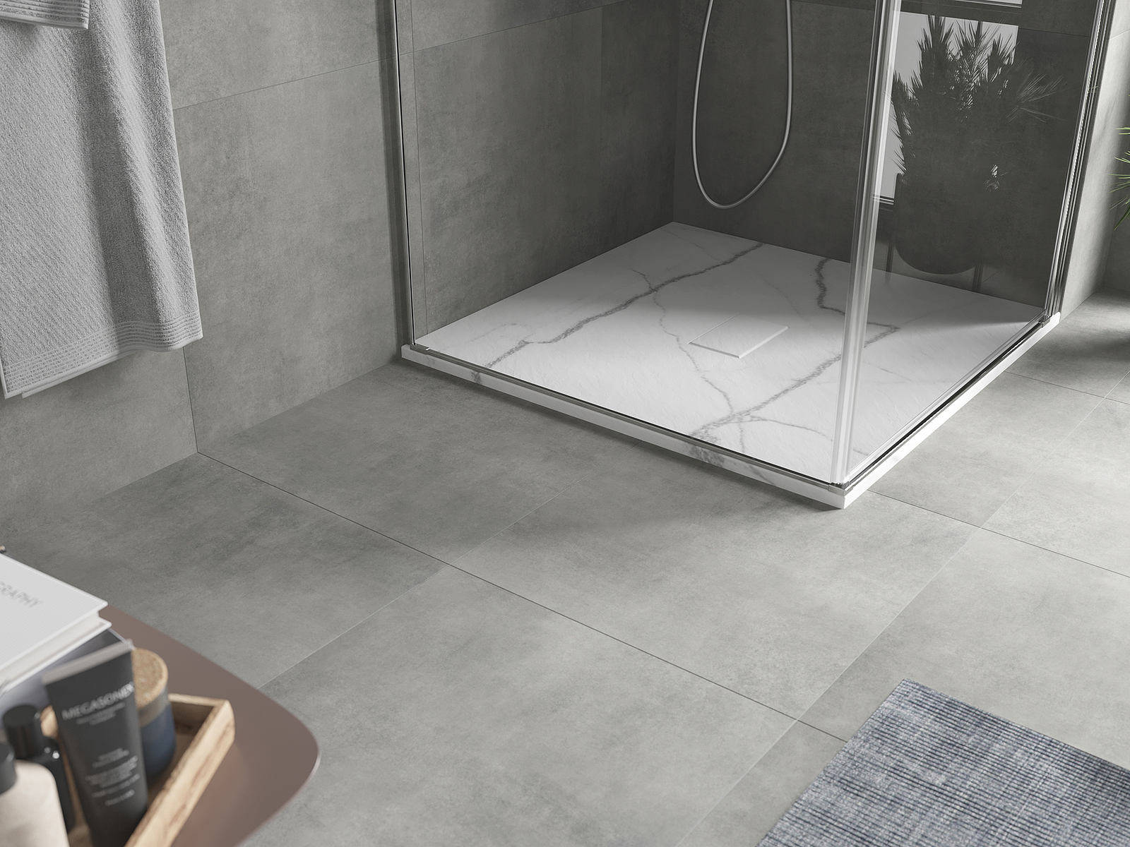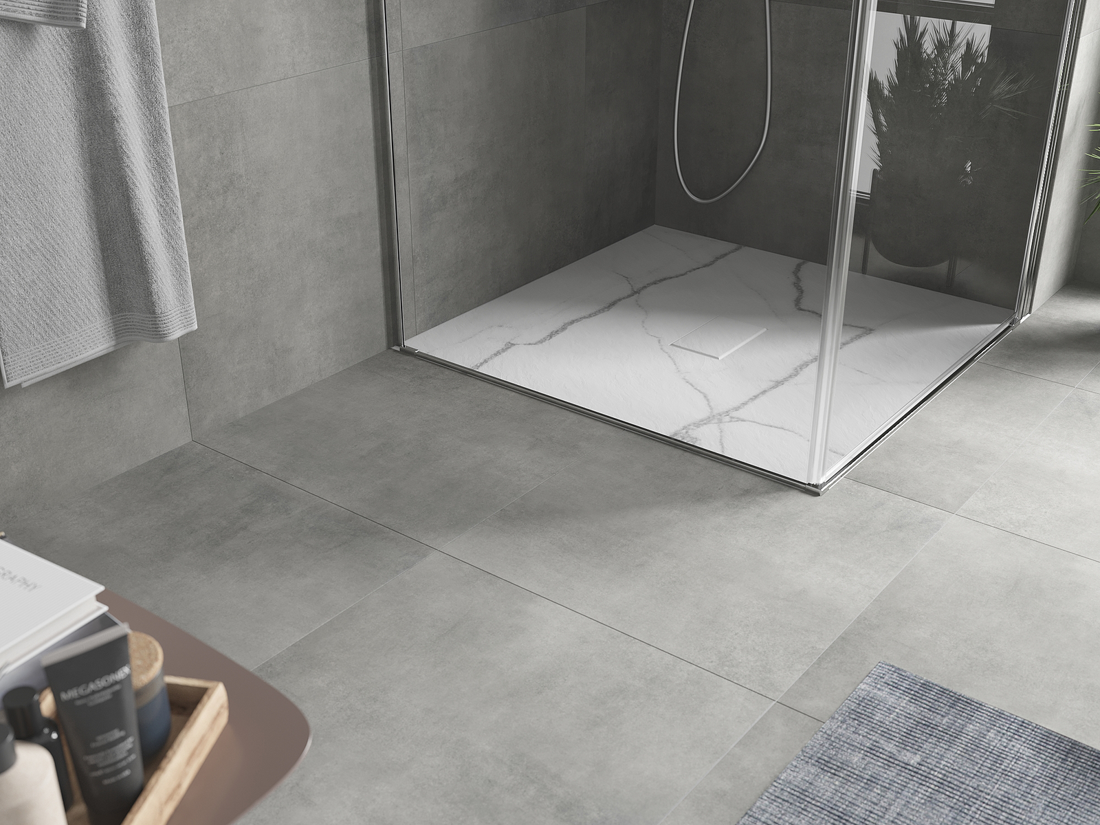 Povrch sprchové vaničky svou strukturou připomíná kámen. Představuje jedinečné spojení přírodního vzhledu s moderním uspořádáním interiéru. Dodává charakter, podtrhuje estetiku a eleganci designu koupelny a okouzluje svou formou.