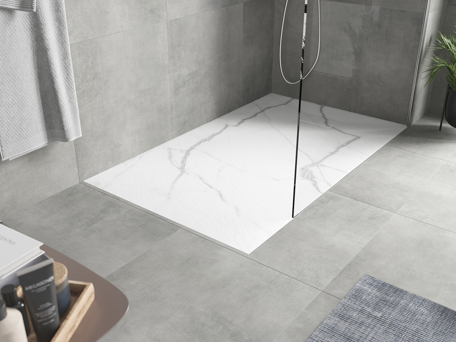 Povrch sprchové vaničky svou strukturou připomíná kámen. Představuje jedinečné spojení přírodního vzhledu s moderním uspořádáním interiéru. Dodává charakter, podtrhuje estetiku a eleganci designu koupelny a okouzluje svou formou.