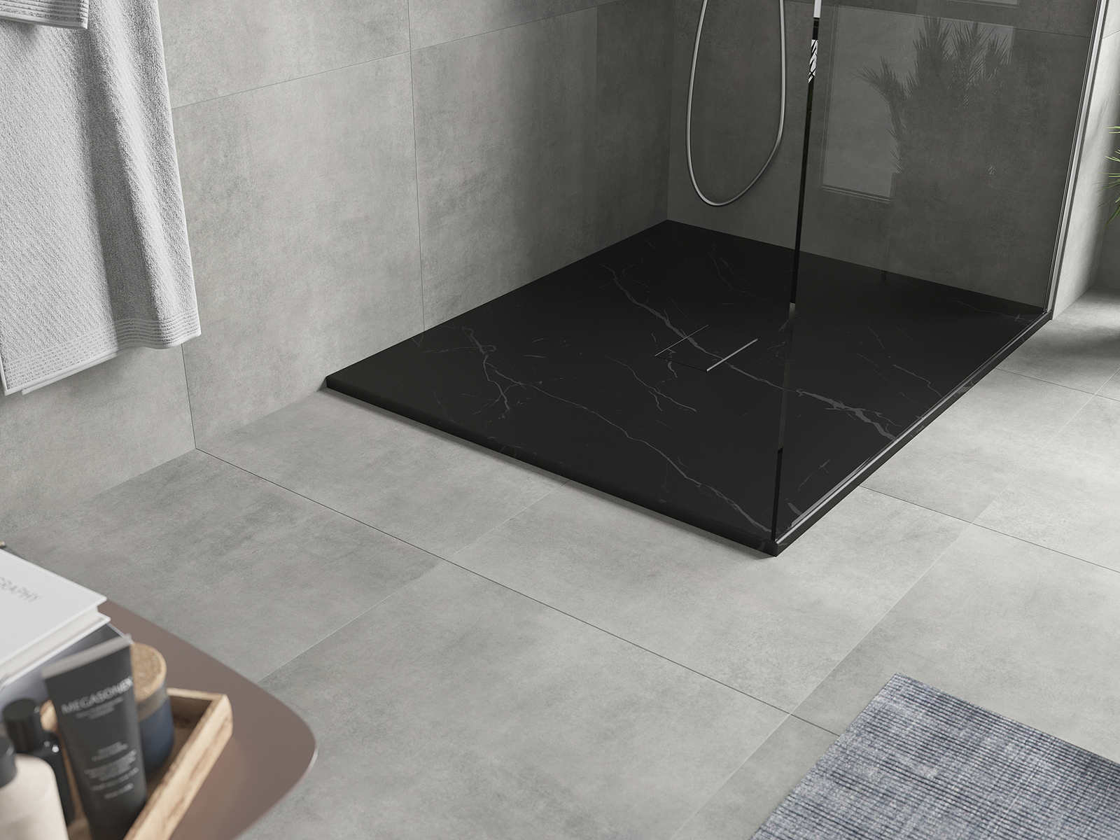 Povrch sprchové vaničky svou strukturou připomíná kámen. Představuje jedinečné spojení přírodního vzhledu s moderním uspořádáním interiéru. Dodává charakter, podtrhuje estetiku a eleganci designu koupelny a okouzluje svou formou.