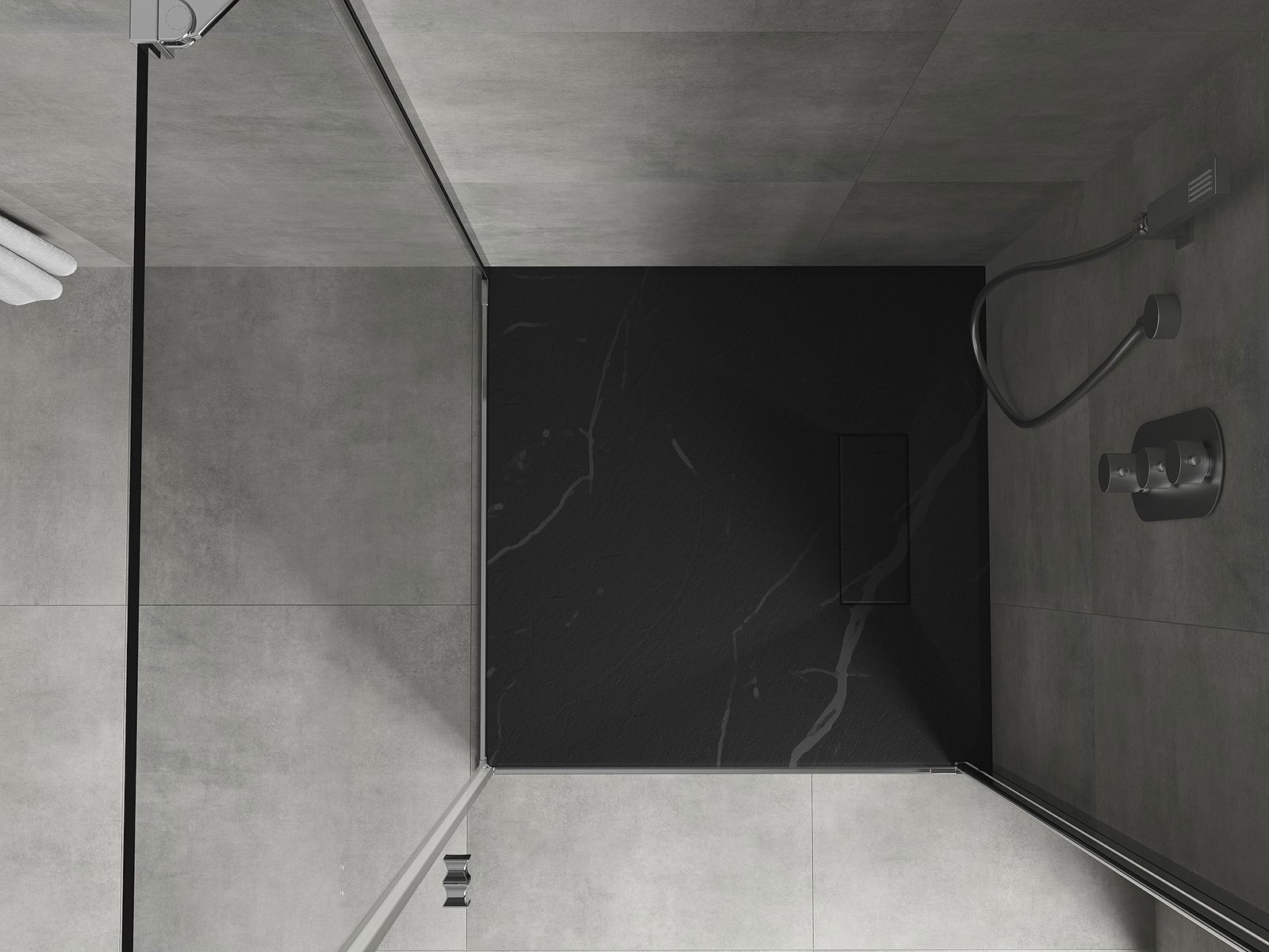 Čtvercový sprchový kout Hugo 80 x 80 cm je ideálním řešením pro moderní koupelnu. Vyroben z odolného materiálu SMC, vyznačuje se strukturovaným povrchem kamene, který mu dodává elegantní vzhled. Jeho ultratenká výška 2,6 cm umožňuje snadnou montáž v podlaze nebo na podlaze. S možností úpravy a vynikající odolností vůči nárazům, sprchový kout zajišťuje stabilitu a komfort při používání. V balení se nachází sifon a odtok o průměru 90 mm usnadňuje odvod vody. Černý kámen je klasický styl, který se hodí do každého interiéru.