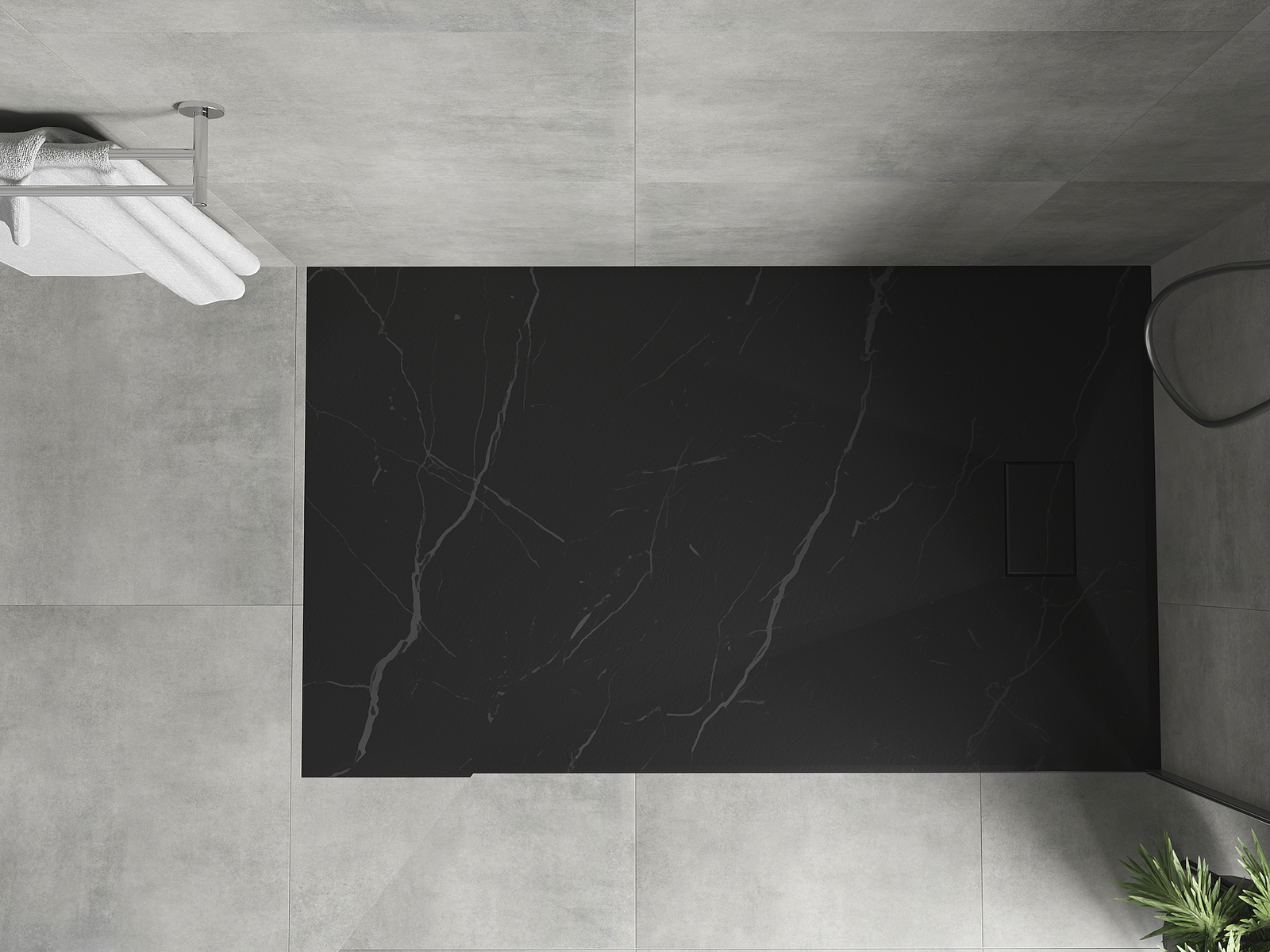 Mexen Hugo obdélníkový sprchový kout SMC 140 x 80 cm, černý kámen je výjimečný produkt, který kombinuje moderní design s funkčností. Jeho ultraplochá konstrukce umožňuje montáž jak ve podlaze, tak na podlaze, což ho činí nesmírně všestranným. Vyroben z odolného SMC plastu, sprchový kout zajišťuje maximální stabilitu a odolnost vůči nárazům. Přirozená struktura kamene a unikátní vzor dodávají eleganci každé koupelně. Možnost přizpůsobení a snadné čištění činí Mexen Hugo ideální volbou pro náročné uživatele. Součástí je sifon čistitelný shora a krytka v barvě černého kamene, průměr odpadu činí 90 mm.