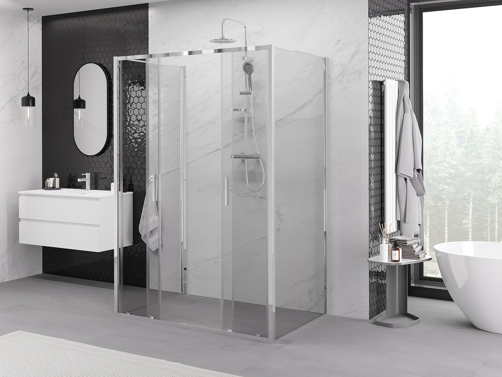 Mexen Exo-3S sprchový kout třístranný posuvný 140 x 90 cm, transparentní, chrom - 8152-140-090-01-00-3S