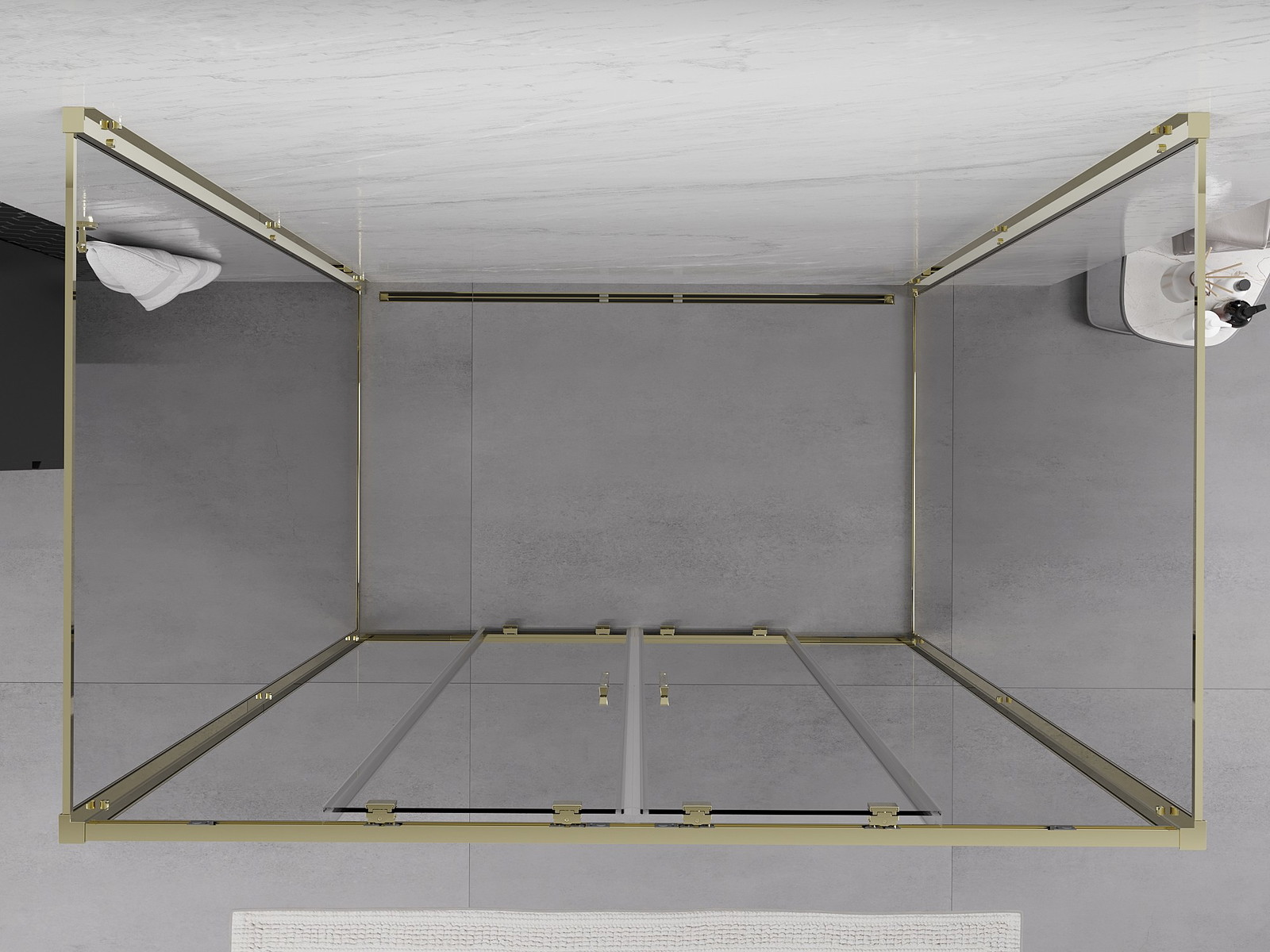 Mexen Exo-3S 3stěnný posuvný sprchový kout 160 x 90 cm, transparentní, zlatý - 8152-160-090-50-00-3S