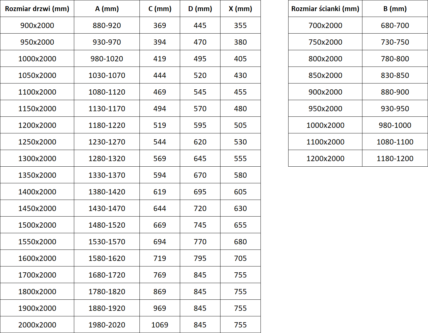 Sprchové kouty, dveře a stěny jsou standardně přizpůsobeny pro montáž na sprchové vaničky určitých rozměrů. Právě tyto rozměry jsou uvedeny v názvu nebo popisu výrobku. Je však třeba mít na paměti, že skutečné rozměry prvků se mohou mírně lišit od nominálních hodnot. V případě plánované instalace přímo na podlahu se doporučuje pečlivě zkontrolovat vnější rozměry a uspořádání prvků podle technického výkresu.