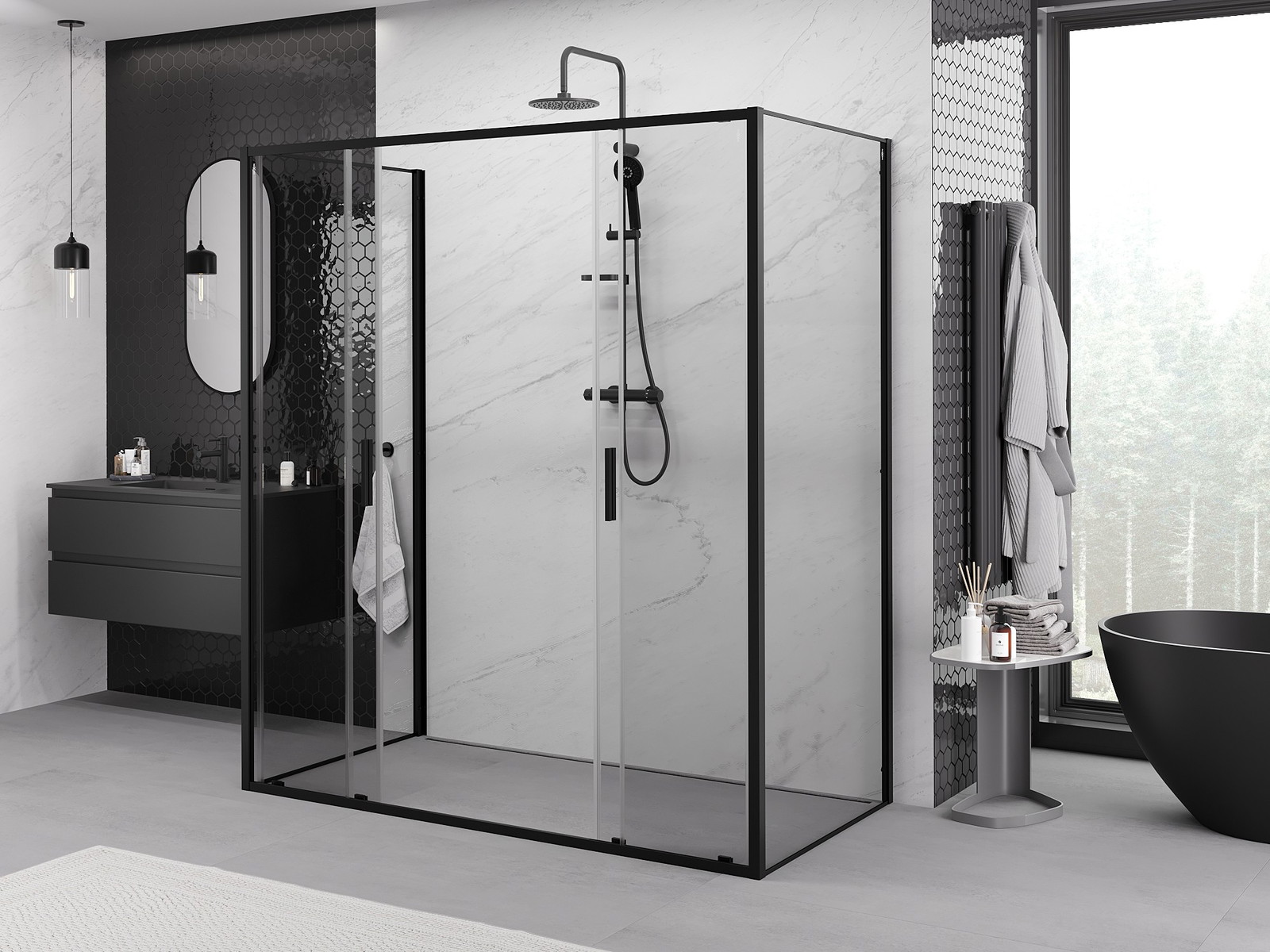 Mexen Exo-3S sprchový kout 3-stěnný posuvný 170 x 75 cm, transparentní, černý - 8152-170-075-70-00-3S