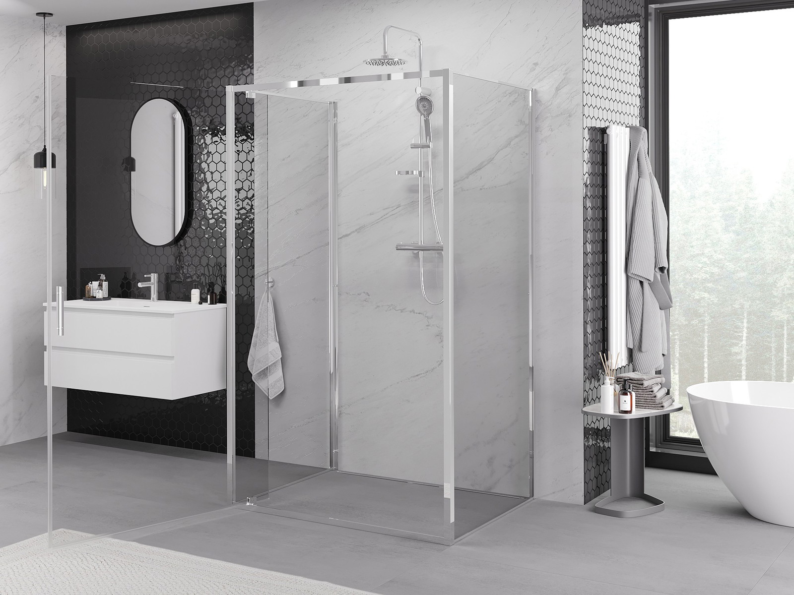 Mexen Exo-3S sprchový kout 3-stranný otočný 90 x 95 cm, transparentní, chrom - 8181-090-095-01-00-3S