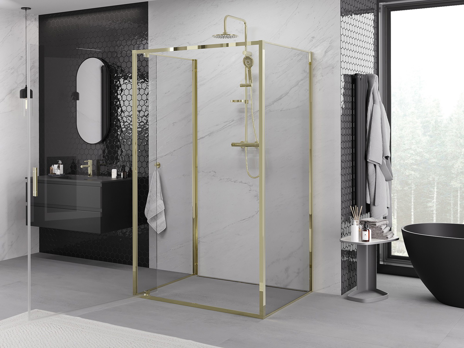 Praktická a pohodlná rukojeť je vyrobena z odolného a trvanlivého kovu. Moderní tvar ve spojení s povrchovou úpravou, která ladí s barvou profilů, dodává celku moderní a stylový vzhled, zdůrazňující estetiku každé koupelny.