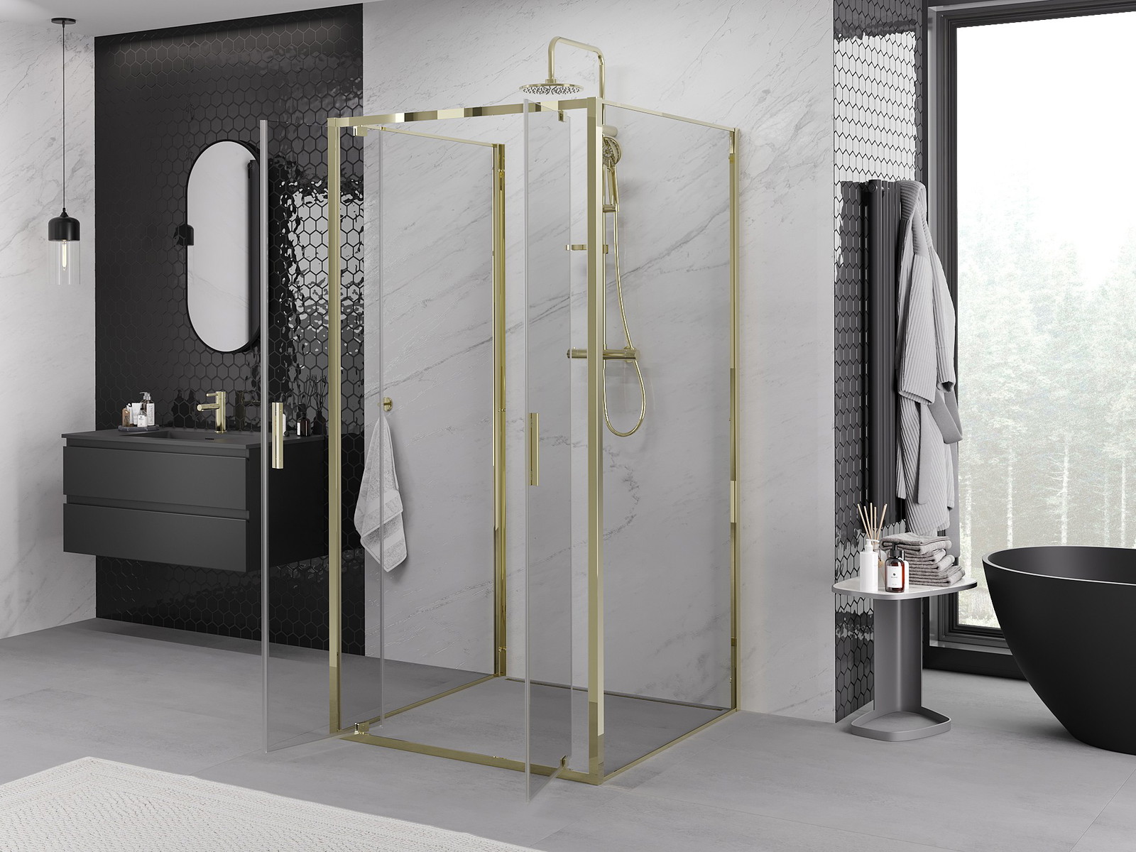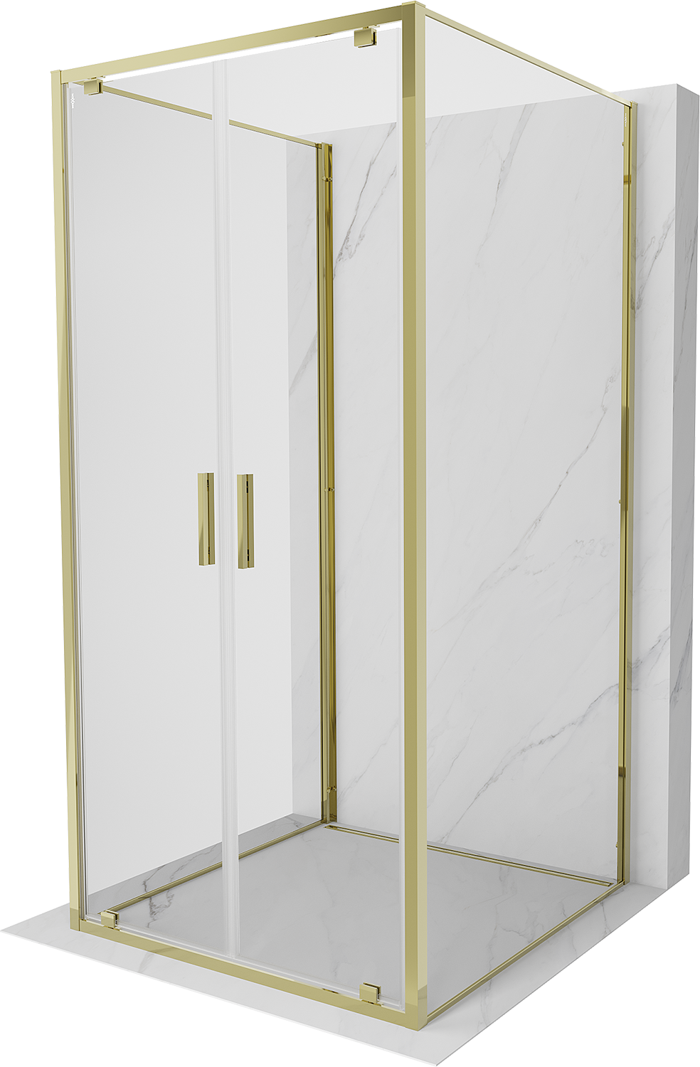 Mexen Exo-3S sprchový kout 3-stěnný otočný 120 x 120 cm, transparentní, zlatý - 8182-120-120-50-00-3S