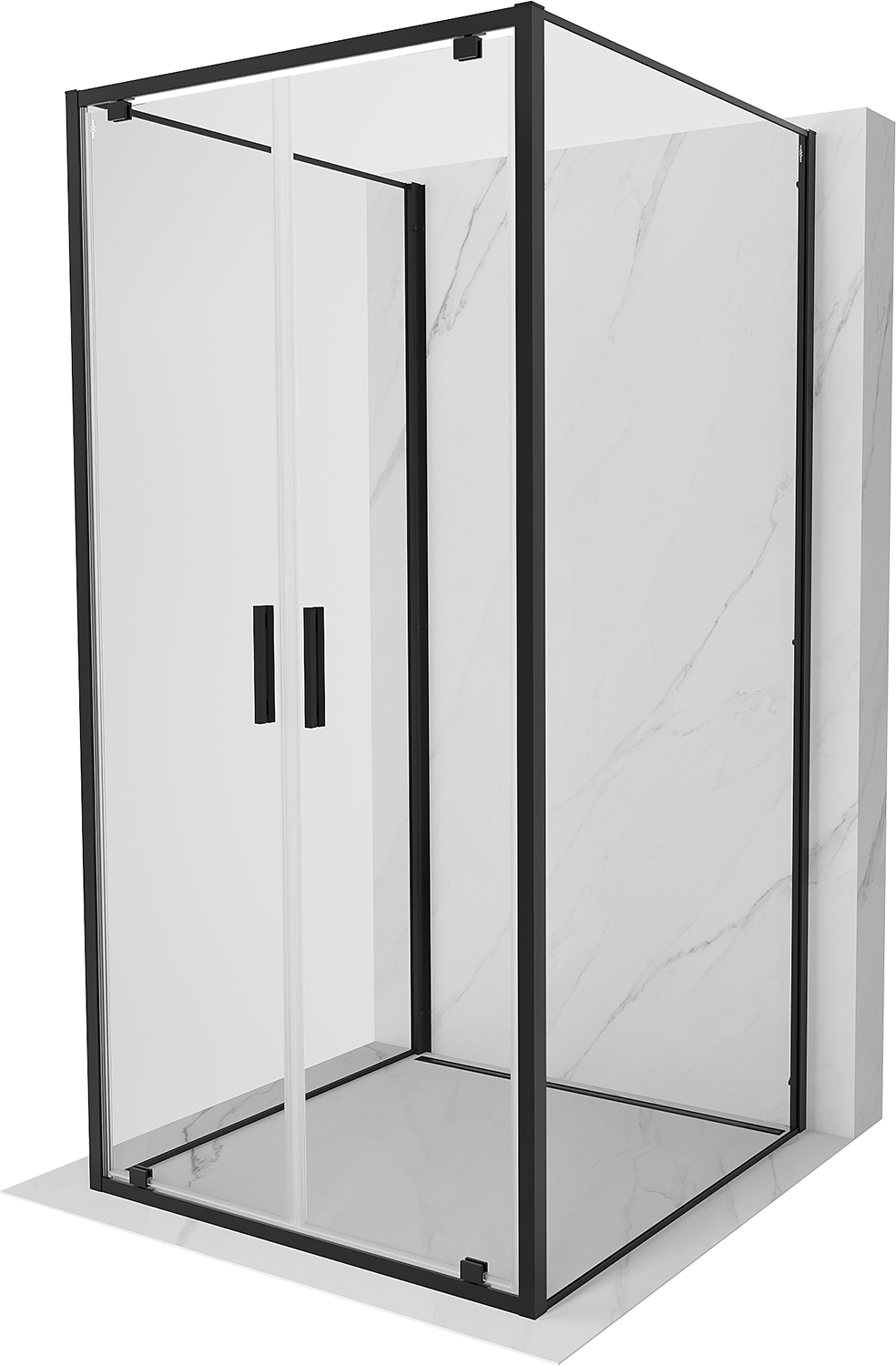 Mexen Exo-3S sprchový kout třístranný otevírací 110 x 110 cm, transparentní, černý - 8182-110-110-70-00-3S