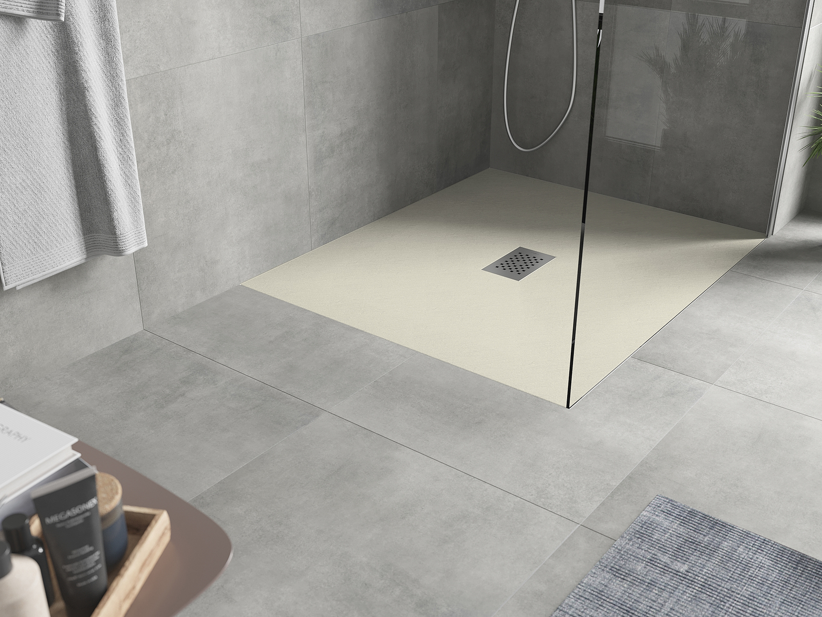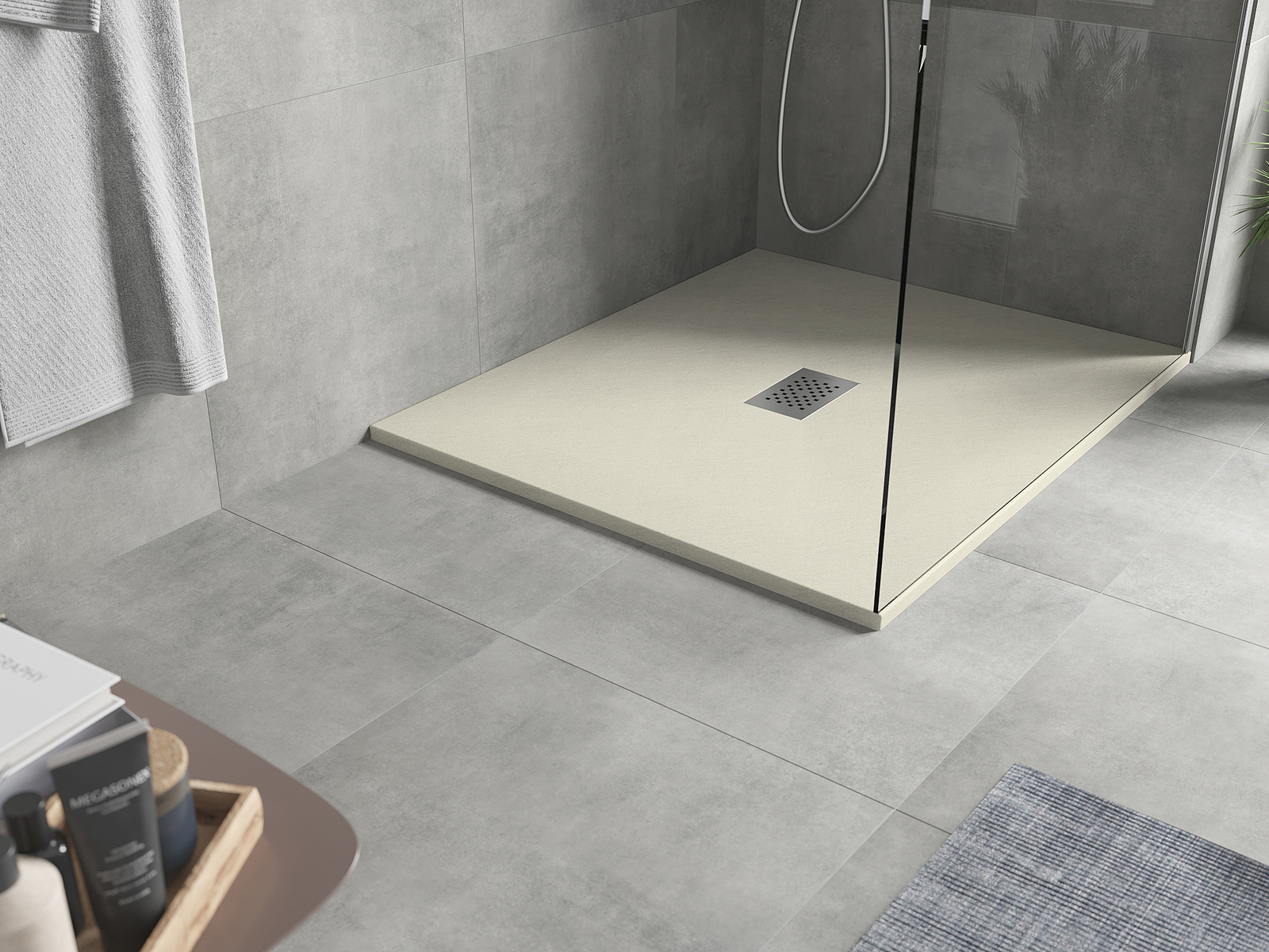 Povrch sprchové vaničky svou strukturou připomíná kámen. Představuje jedinečné spojení přírodního vzhledu s moderním uspořádáním interiéru. Dodává charakter, podtrhuje estetiku a eleganci designu koupelny a okouzluje svou formou.