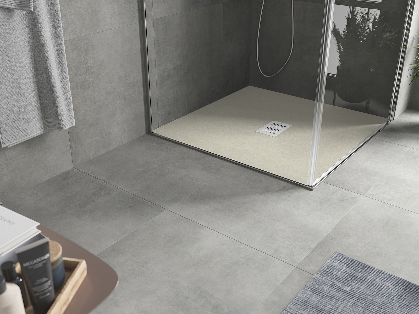 Povrch sprchové vaničky svou strukturou připomíná kámen. Představuje jedinečné spojení přírodního vzhledu s moderním uspořádáním interiéru. Dodává charakter, podtrhuje estetiku a eleganci designu koupelny a okouzluje svou formou.