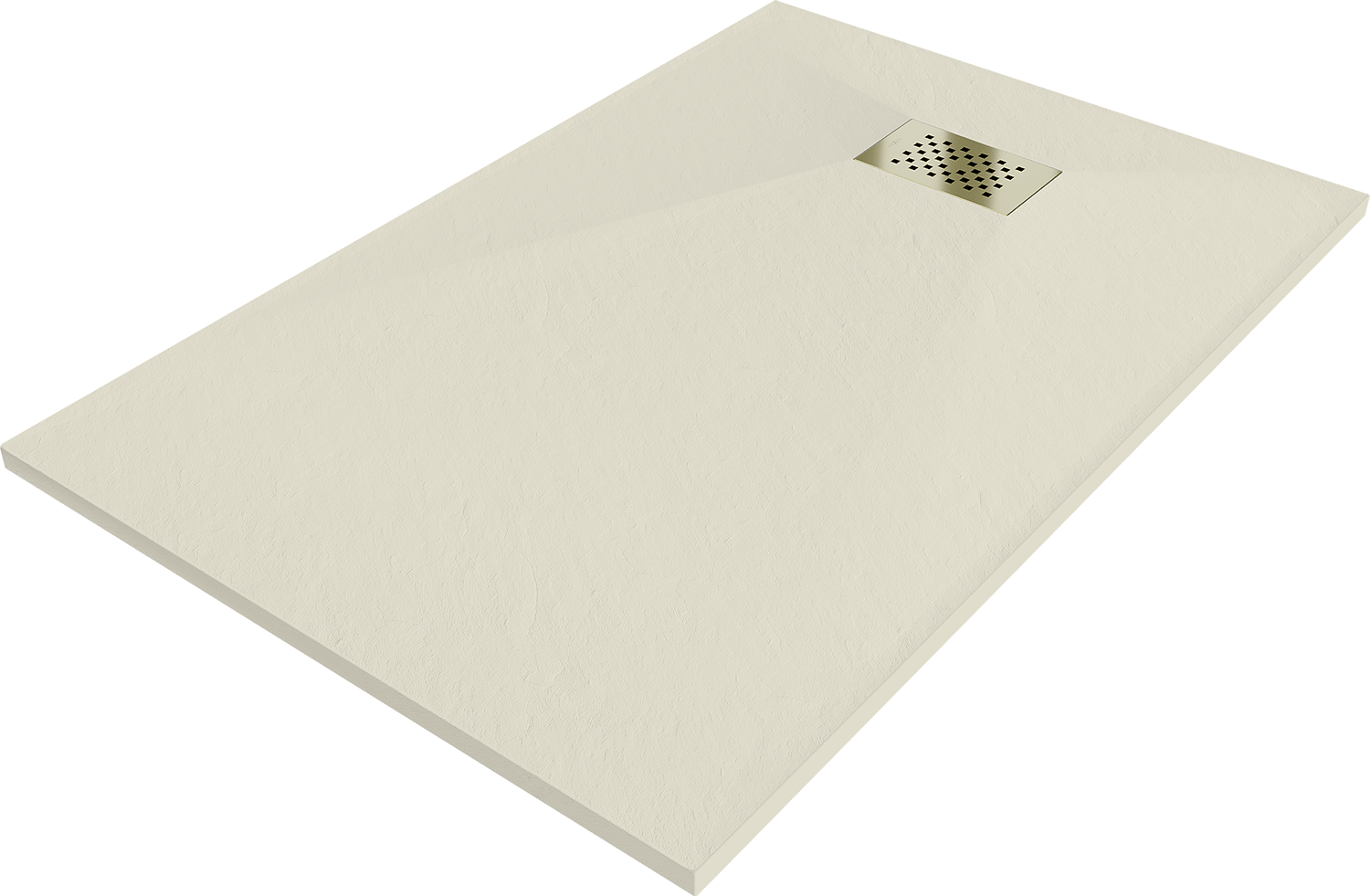 Mexen Hugo je vysoce kvalitní obdélníkový sprchový kout vyrobený z odolného plastu SMC v béžové barvě s elegantním zlatým krytem. Díky rozměrům 100x70 cm a ultraplochému profilu je ideální pro instalaci jak v podlaze, tak na ní. Sprchový kout zajišťuje maximální stabilitu a odolnost proti nárazům, a jeho kamenitá struktura dodává styl. Možnost úpravy velikosti umožňuje přizpůsobení individuálním potřebám. Produkt obsahuje sifon čistitelný shora o průměru odtoku 90 mm.