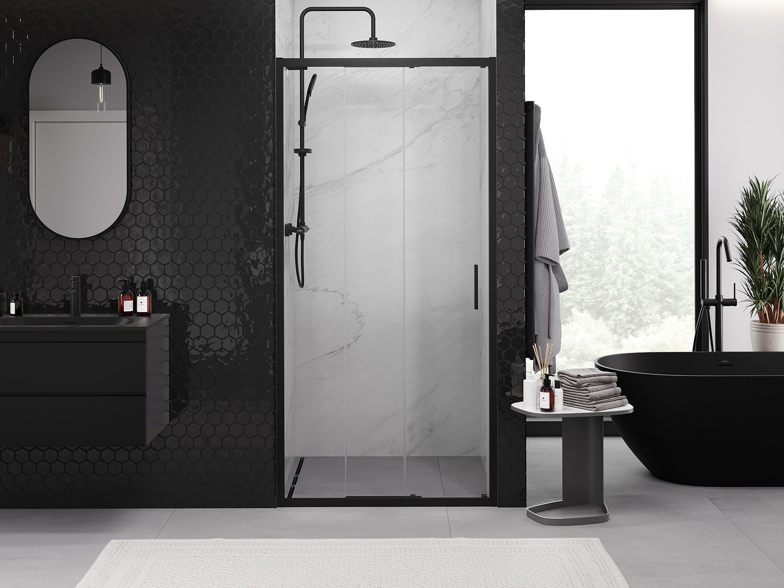 Mexen Exo-3S posuvné sprchové dveře 85 cm, transparentní, černé - 8153-085-000-70-00
