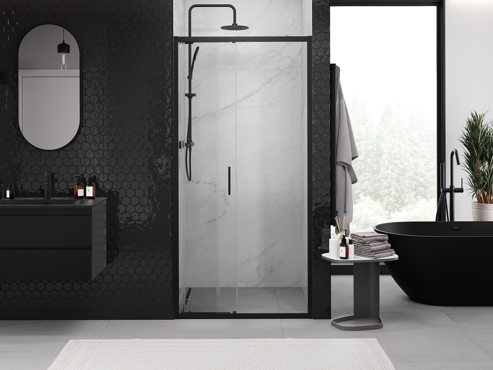 Mexen Exo-3S posuvné sprchové dveře 90 cm, transparentní, černé - 8153-090-000-70-00