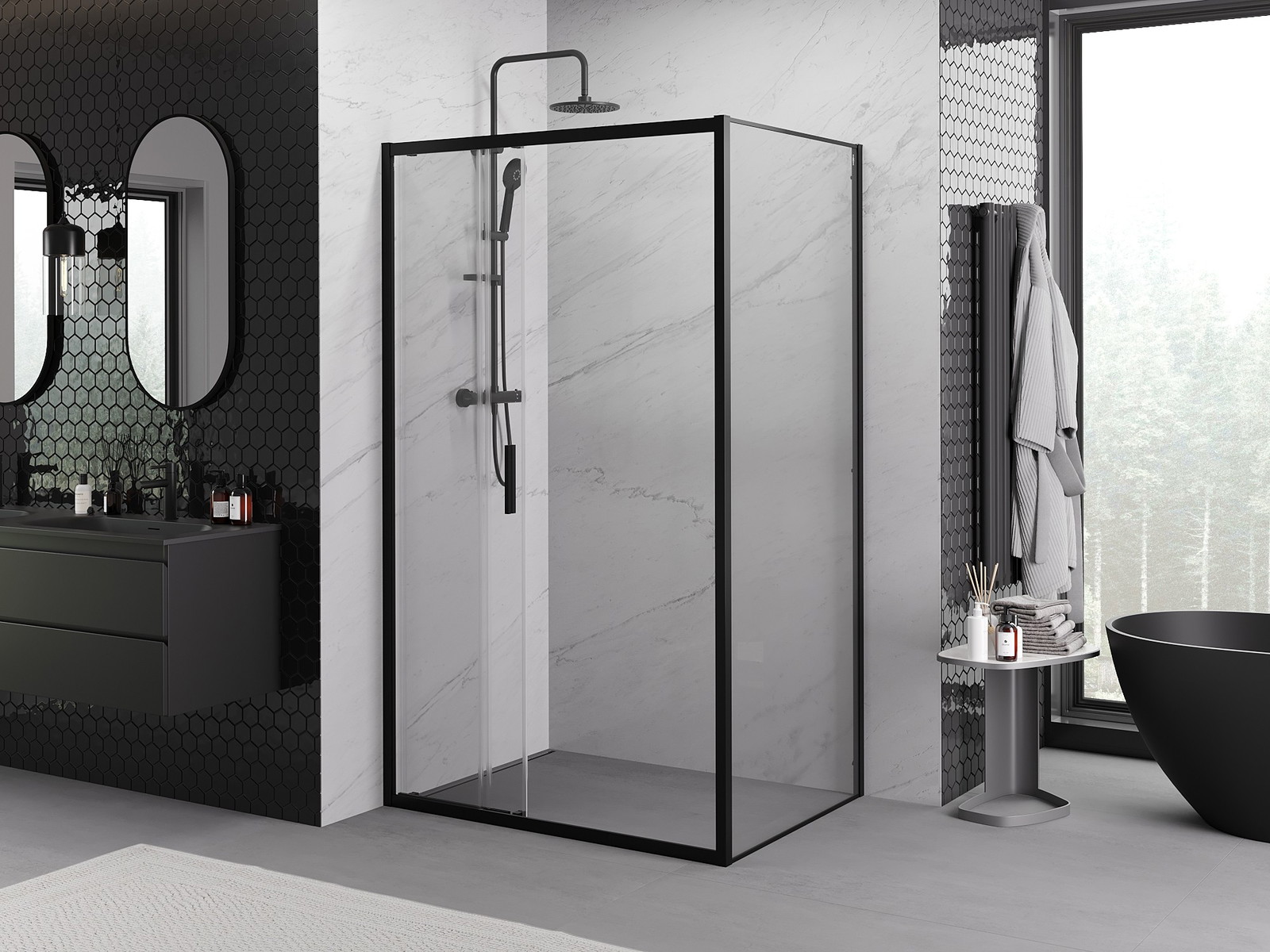 Mexen Exo posuvný sprchový kout 95 x 85 cm, transparentní, černý - 8153-095-085-70-00