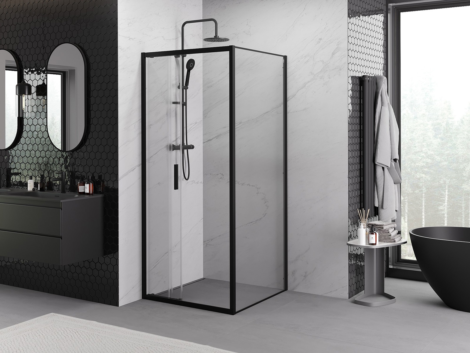 Mexen Exo posuvná sprchová kabina 90 x 90 cm, transparentní, černá - 8153-090-090-70-00