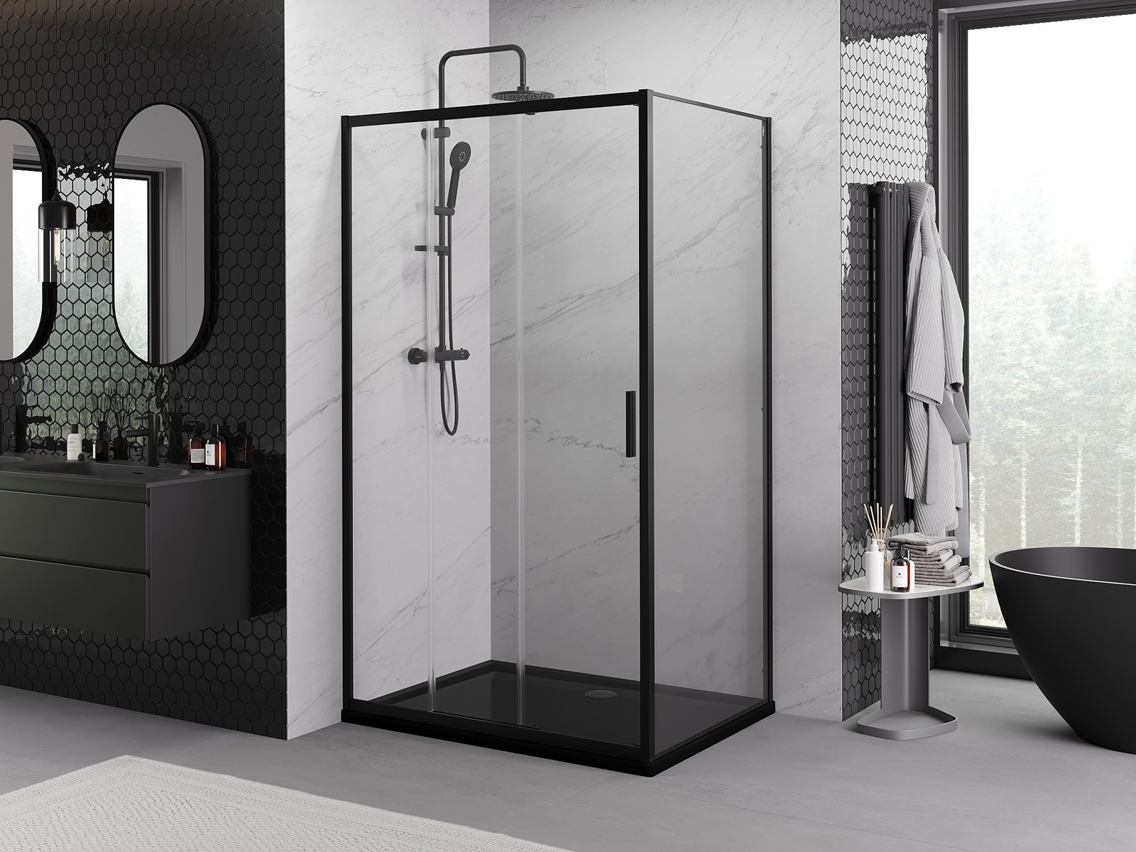 Mexen Exo posuvná sprchová kabina 100 x 95 cm, transparentní, černá - 8153-100-095-70-00