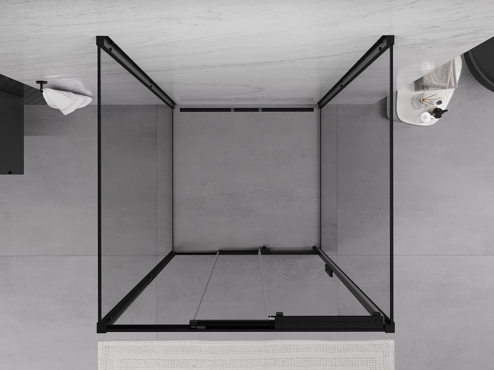 Mexen Exo-3S sprchový kout 3-stěnný posuvný 100 x 100 cm, transparentní, černý - 8153-100-100-70-00-3S