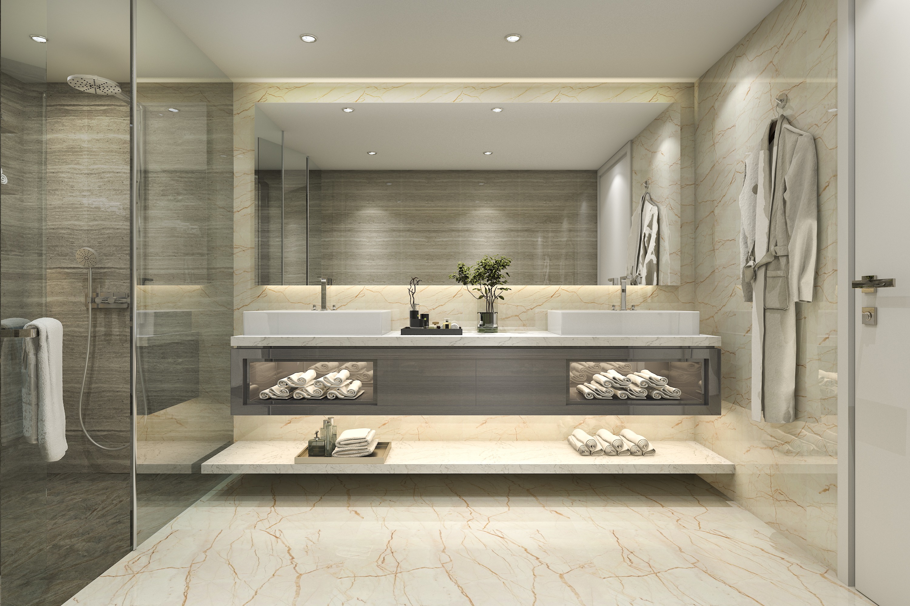 Další výhodou místního osvětlení je možnost jeho využití v pracovních zónách, tj. v místech, kde se ukládají chemikálie, koupelnové potřeby a ručníky.