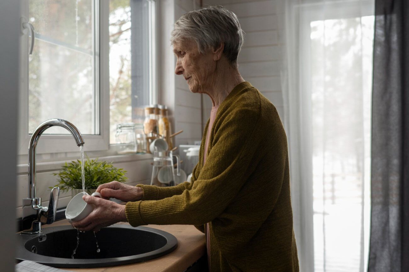 - Riziko postříkání skla a parapetu – při mytí nádobí, zejména větších kusů, existuje riziko postříkání okna, parapetu a okenních rámů vodou. Vlhkost může vést k mechanickému poškození, jako je deformace parapetu nebo koroze okenních rámů – zejména pokud jsou dřevěné. Je tedy dobré dbát na správné zabezpečení těchto prvků, například použitím materiálů odolných vůči vlhkosti nebo jejich pravidelnou údržbou.