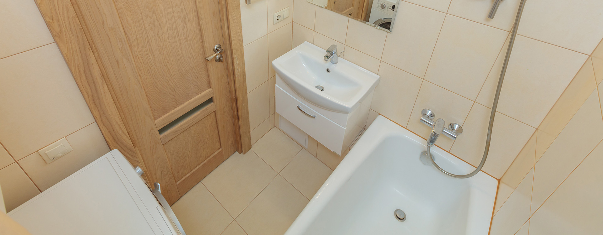 Zařizování interiéru malé koupelny nemusí být mukou. Vyvarujte se řešení, která přivedou chaos a nepořádek do vašich čtyř stěn. Jedním z nich je bezpochyby ozdobení koupelny malými, vzorovanými dlaždicemi. Mnoho lidí se rozhodlo pro toto řešení, mylně přesvědčených, že malé dlaždice jsou prospěšné pro omezený prostor. Vyhněte se spojování dlaždic širokou spárou - nemají použití na malých plochách. Další častou chybou při zařizování malé koupelny je volba van, umyvadel a záchodů, které neodpovídají možnostem prostoru. Pokud chcete opticky zvětšit svou koupelnu, zvažte možnosti, které nabízejí zavěšené koupelnové skříňky. Zavěšené umyvadlo vytvoří harmonický celek s velkými, světlými podlahovými dlaždicemi a tak navržená koupelna bude působit větší, než ve skutečnosti je.