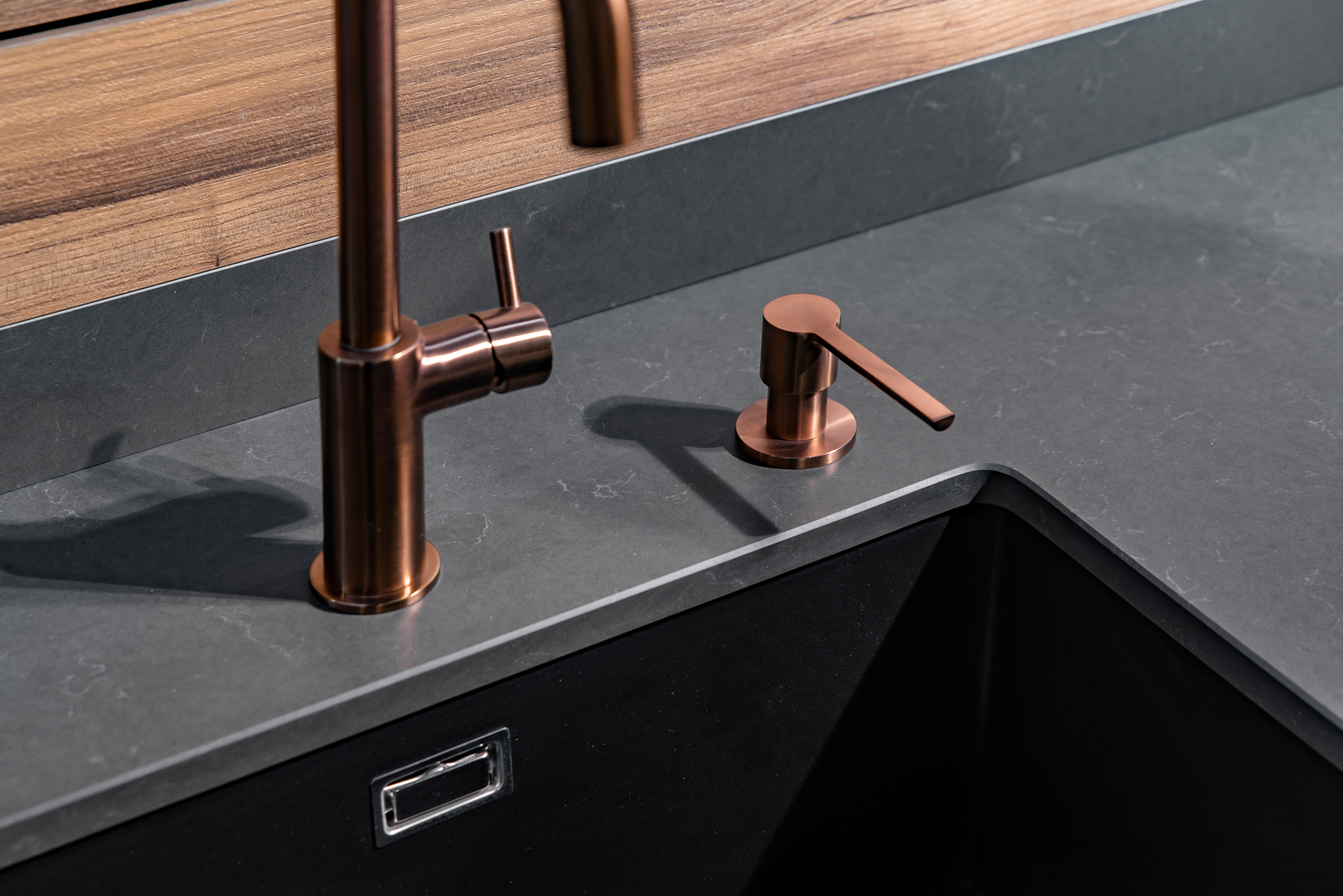 Nejčastěji jsou všechny kuchyňské detergenty umístěny na okraji pracovní desky nebo na odkapávači, jsou po ruce, ale není to zvlášť pohodlné ani estetické řešení. Právě naopak, pestře barevné plastové lahve mohou přinést do kuchyně chaos, a při energických pohybech lze omylem shodit láhve na podlahu, nemluvě o tom, že je lze kvůli roztržitosti postavit úplně na jiném místě. Abychom takovým situacím předešli, je nejjednodušší koupit žulový dřez vybavený odpovídajícími dávkovači.