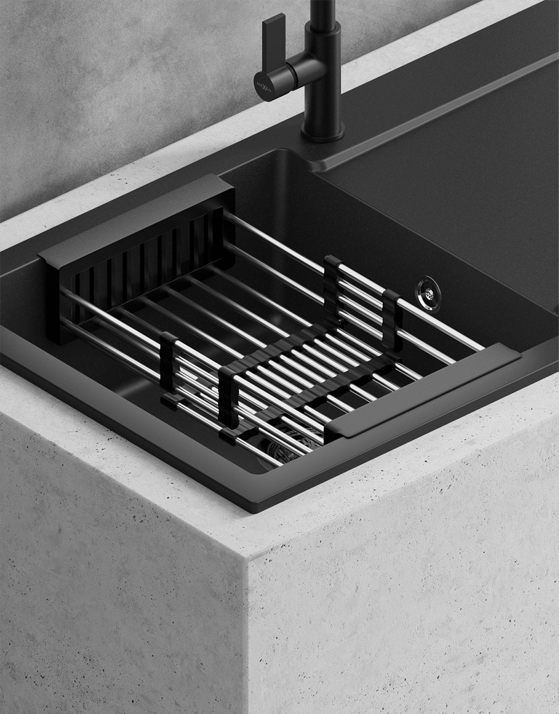 Mexen teleskopická kuchyňská odkapávač s nastavitelnou šířkou, černá - 660730-70